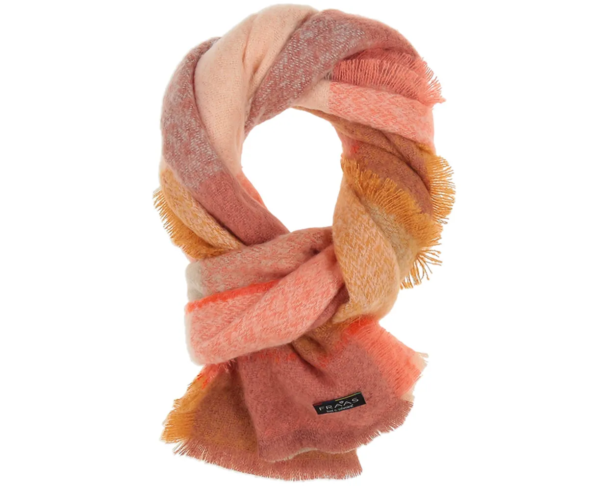 Fraas sjaal. Deze multi color Fraas sjaal is vervaardigd uit kunststof. Deze trendy sjaal heeft afmetingen van 63×200 cm.