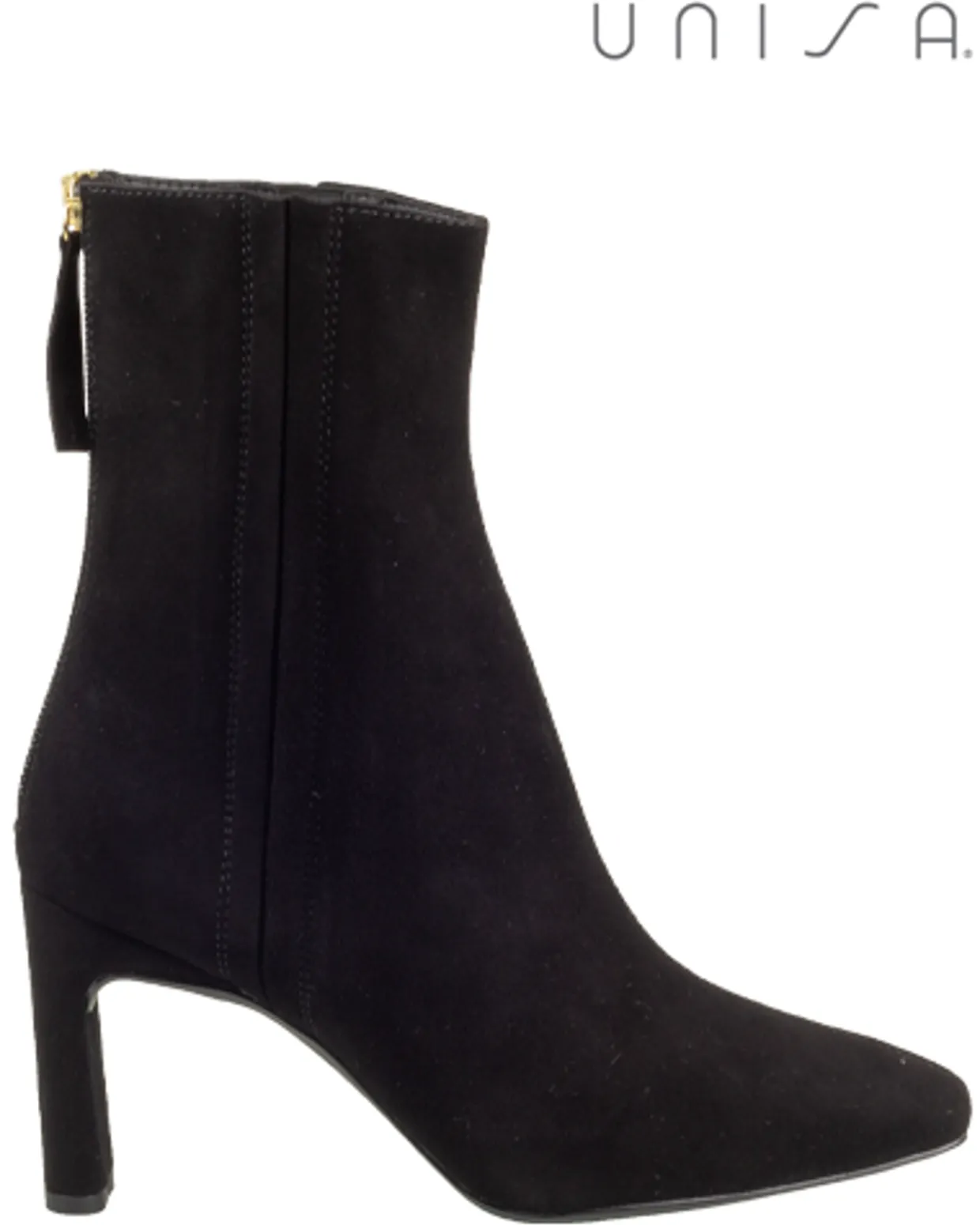Unisa enkellaarsjes. Deze Unisa Wadix enkellaarzen zijn vervaardigd uit suède en hebben een leren binnenvoering. De trendy, zwarte laarsjes zijn voorzien van een ritssluiting en hebben een mooie hak van ongeveer 8 centimeter.